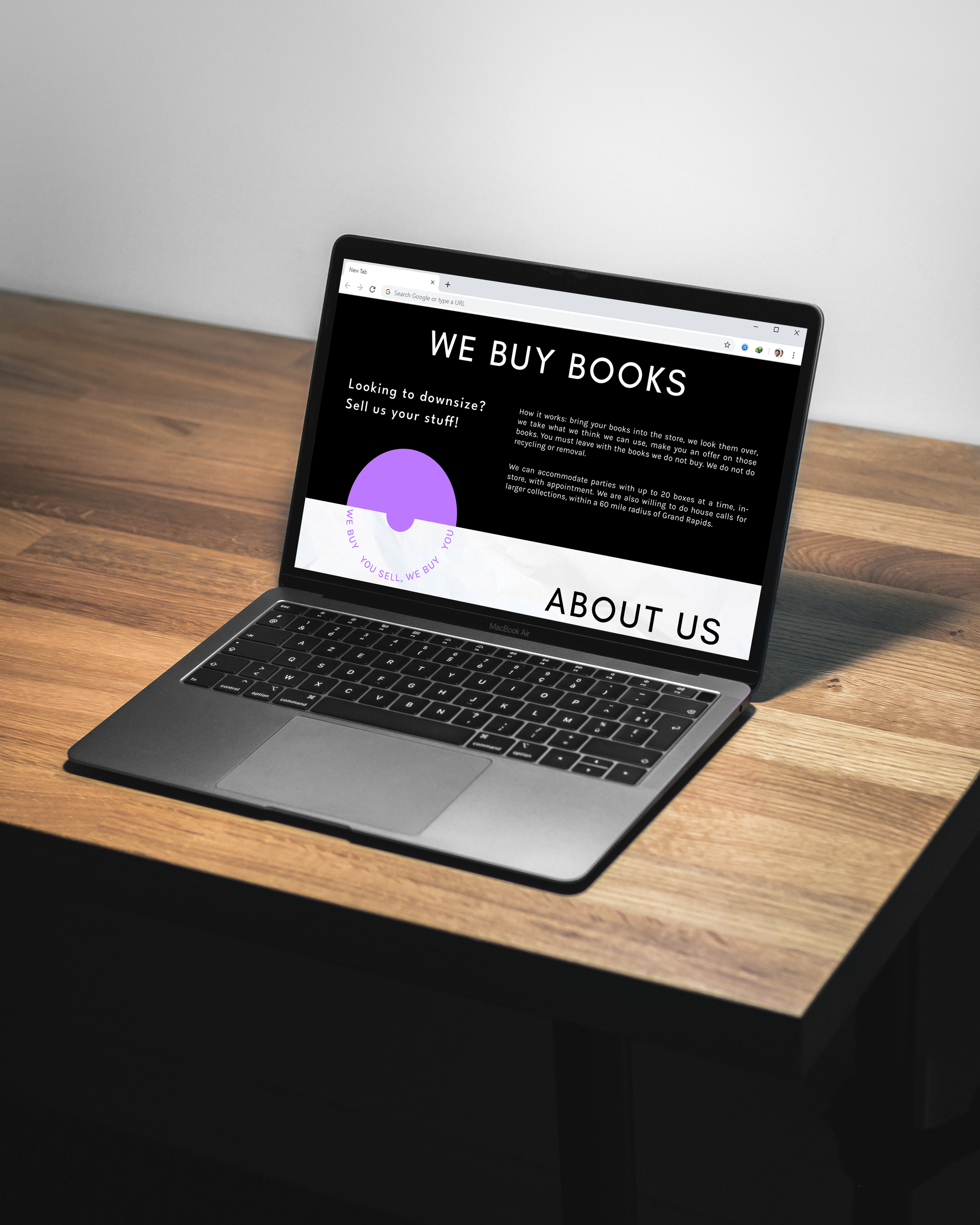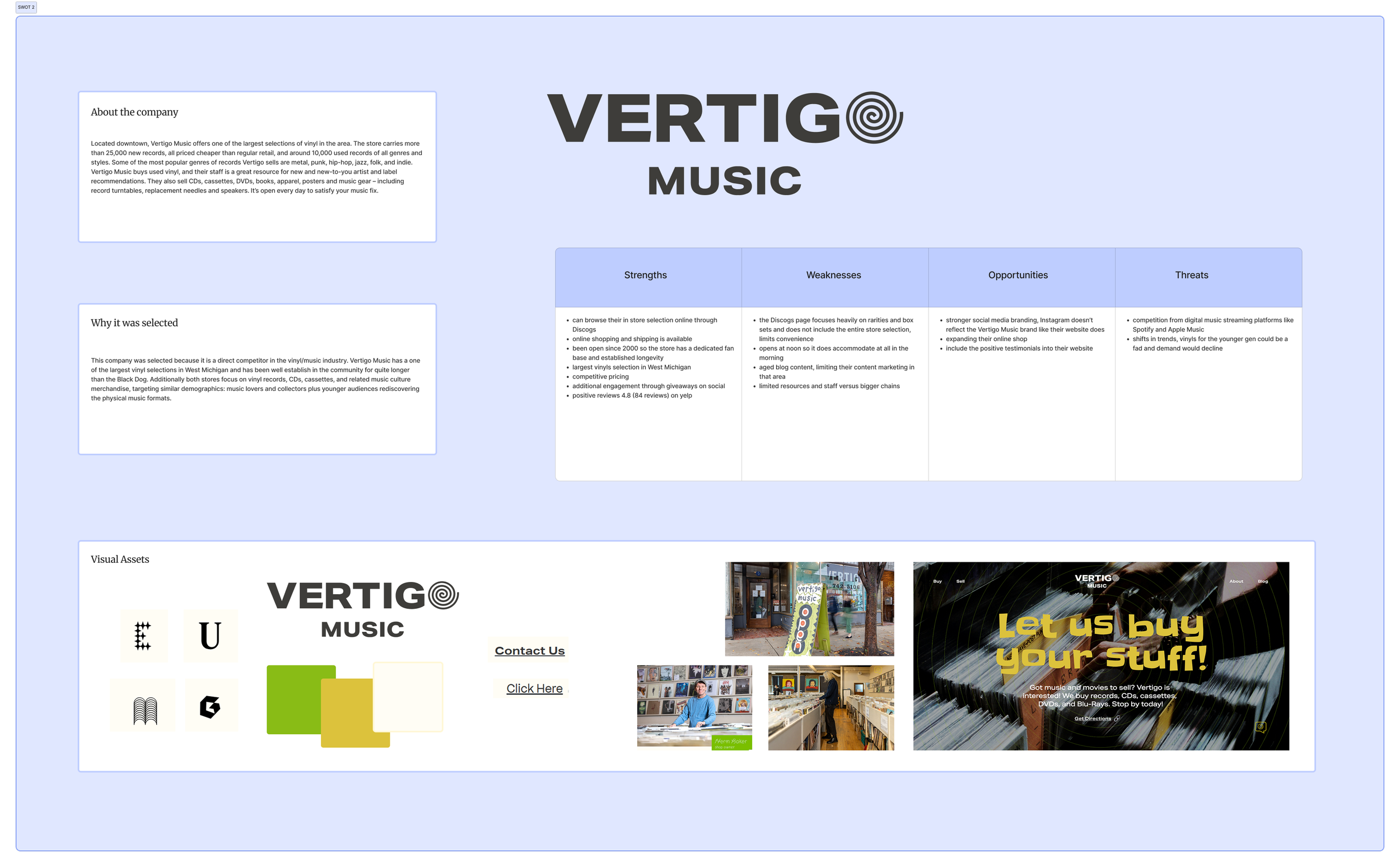 Before diving into design, I visited Black Dog Books and Records to assess the branding that was already in place. The store currently has very minimal branding physically and digitally. Shown on the left is the established logo as well as merch, like bookmarks. Their website is a simple black-and-white one-pager focused on the types of books they buy, and their social media presence is equally stripped down, mainly featuring posts of specific books or vinyl records for sale.
