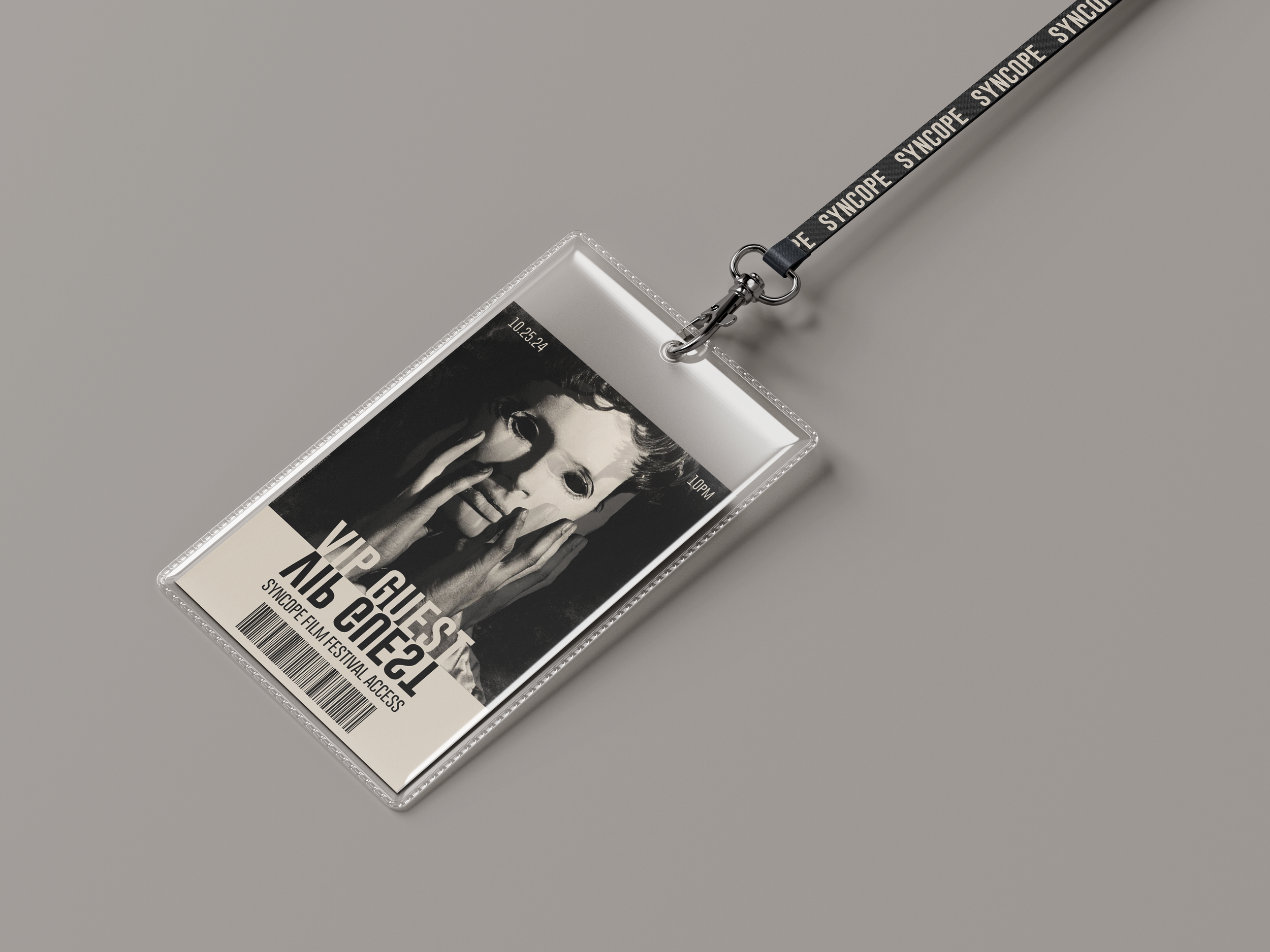 The final product includes a promotional poster, tickets, and a lanyard based on access.
