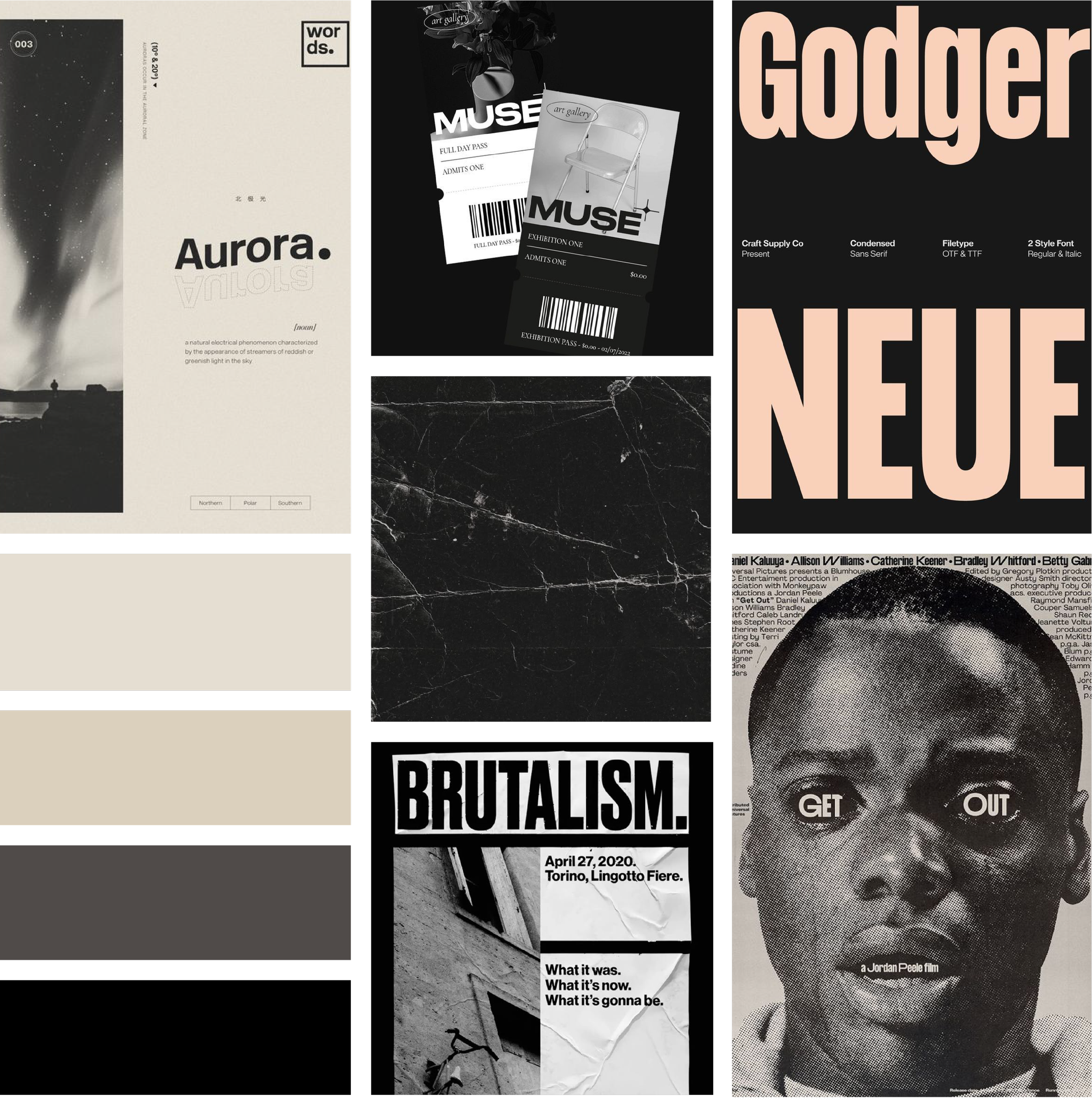 Inspiration for this project was drawn from researching brutalist design as well as a more editorial-like layout. I was drawn to bold typography, high-contrast compositions, and textures that feel intentional yet slightly imperfect.