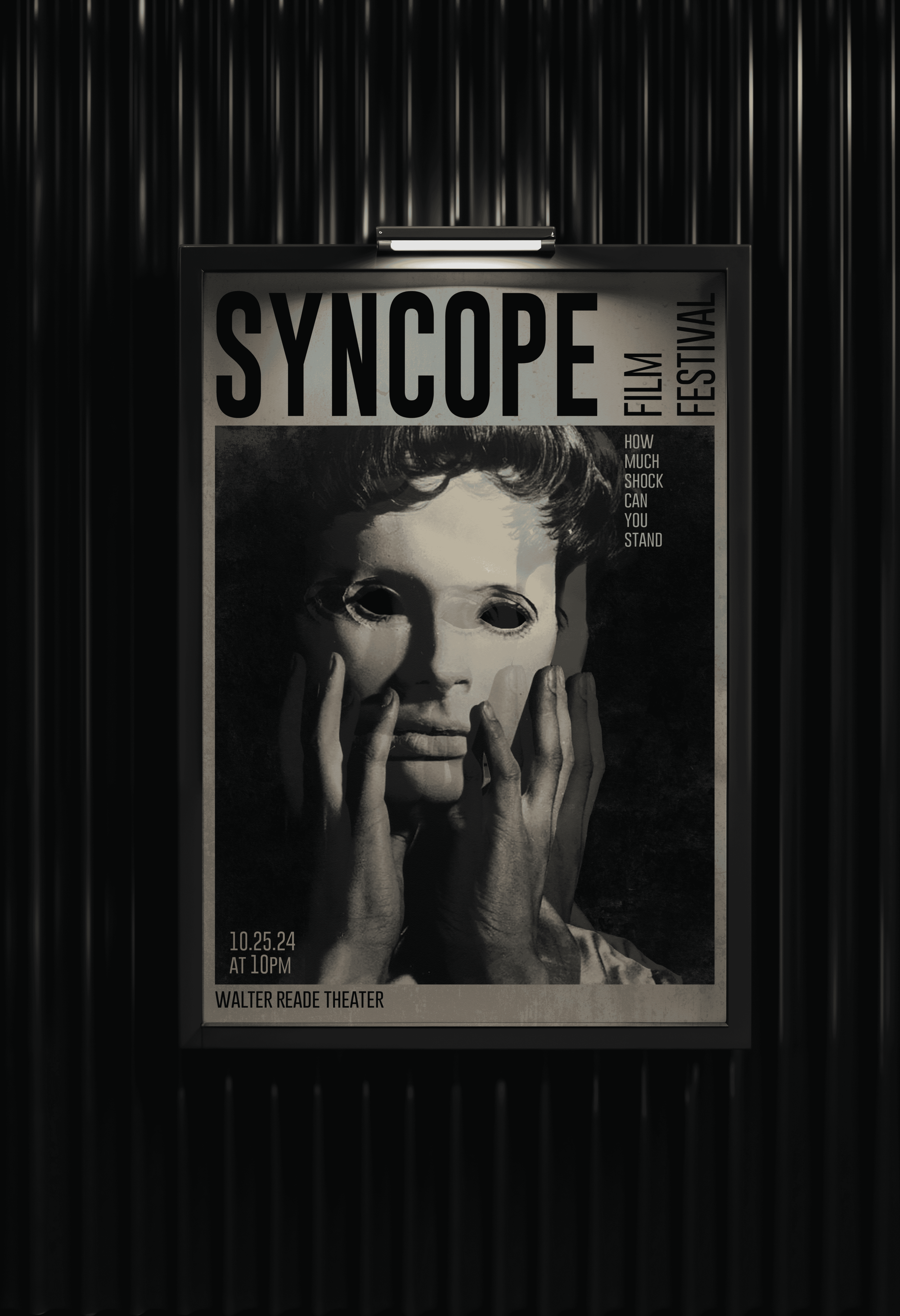 Syncope Film Festival is a showcase for international and independent filmmakers. It brings together storytellers and features a packed program of content for fans of horror. The flyer promotes the festival, which is open to the public. However, the level of access can vary, including the option for a VIP guest pass.